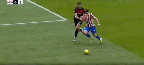 第83分钟,阿尔瓦雷斯倒地踩球过人,戴维-洛佩斯拉人犯规吃到黄牌